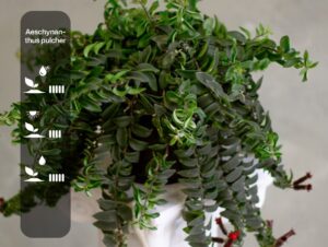 آشینانتوس پولچر، که با نام رایج «گل شمعی زیبا» نیز شناخته میشود، گیاهی آویز و زینتی با گلهای قرمز و برگهای گوشتی است که جلوهای شاداب و رنگین به محیط داخلی میبخشد. گلهای لولهای بلند آن ظاهر خاصی ایجاد میکنند و محبوبیت بالایی در دکوراسیون داخلی دارند