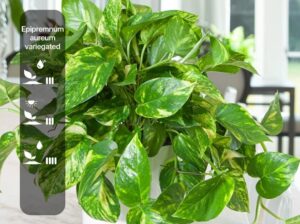 اپیپرمنوم اورئوم واریگیتد، که با نام رایج «پتوس طلایی» نیز شناخته میشود، یک گیاه همیشهسبز و رونده با برگهای قلبی شکل است که لکهها و رگههای طلایی-زرد روی زمینهی سبز تیرهی آن جلوهای خاص ایجاد میکنند. این طرحهای متنوع روی برگها باعث محبوبیت فراوان این گیاه در دکوراسیون داخلی شدهاند.
