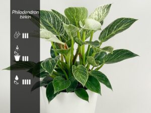 فیلودندرون برکین که بیشتر با نام فیلودندرون خطدار شناخته میشود، یکی از گونههای محبوب فیلودندرون است. برگهای سبز تیرهی آن با خطوط سفید و کرمی ظریف جلوهای بسیار خاص و لوکس ایجاد میکنند. این گیاه برای رشد نیاز به نور غیرمستقیم روشن دارد و در مکانهای کمنور هم میتواند دوام بیاورد. آبیاری منظم و رطوبت نسبی محیط برای شادابی برگها ضروری است. برکین گیاهی همیشهسبز و مقاوم است و برای دکوراسیون خانه و دفاتر انتخابی عالی به شمار میرود.