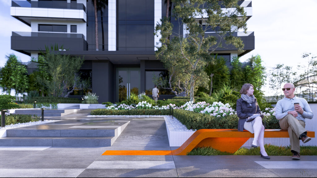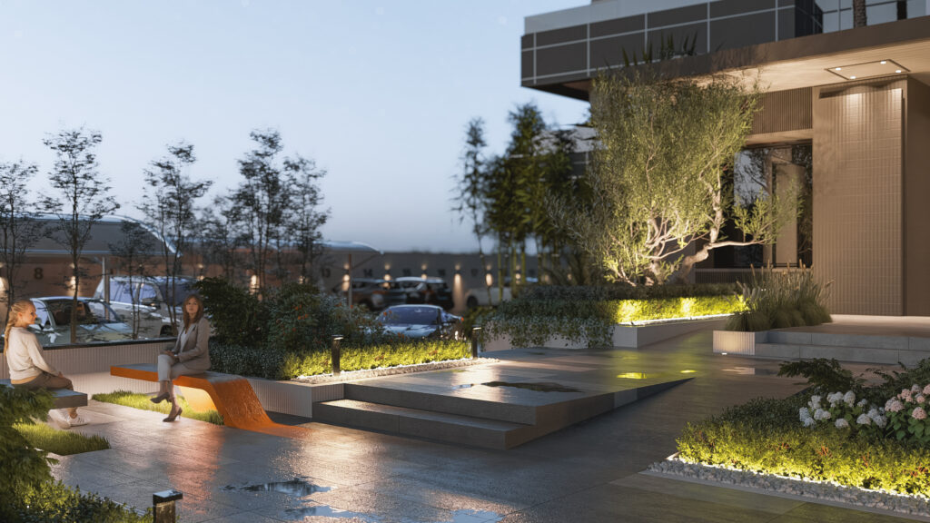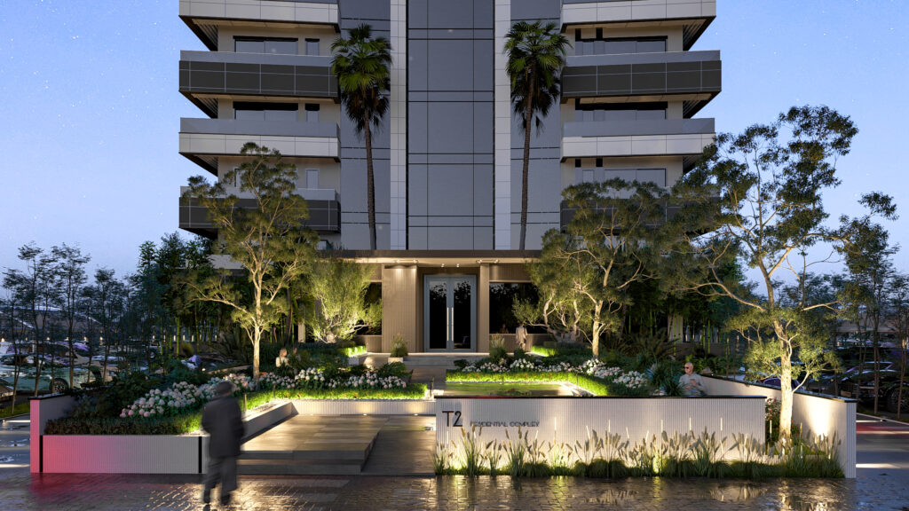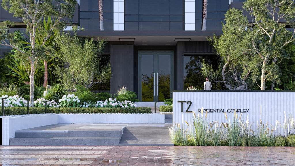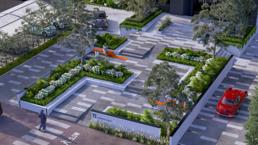 The design of the T2 Tower entrance goes beyond creating a functional gateway — it establishes a space for pause, rest, and reflection within the urban fabric.