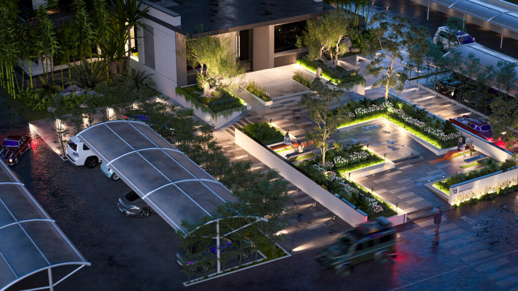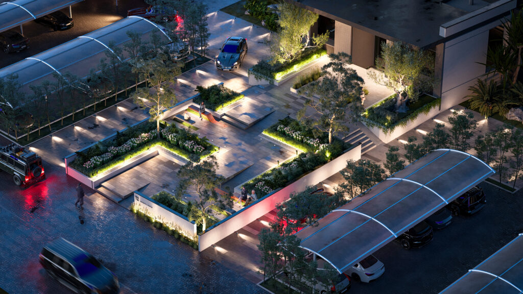 Dedicated VIP parking zones are seamlessly integrated, ensuring both efficiency and aesthetic coherence.